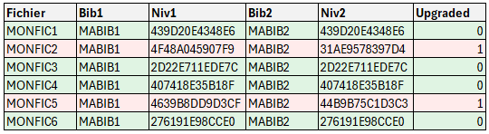 Cette requête SQL permet de mettre en évidence les différences de niveaux entre 2 bibliothèques :